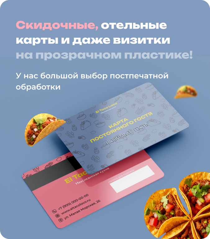 Встречают по визитке. Мы предложим столько видов дизайна и обработки, что вас не захотят отпускать.