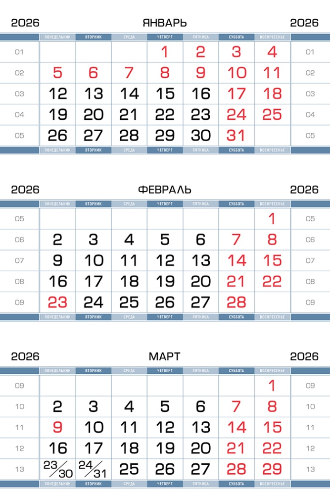 Календарная сетка Трио